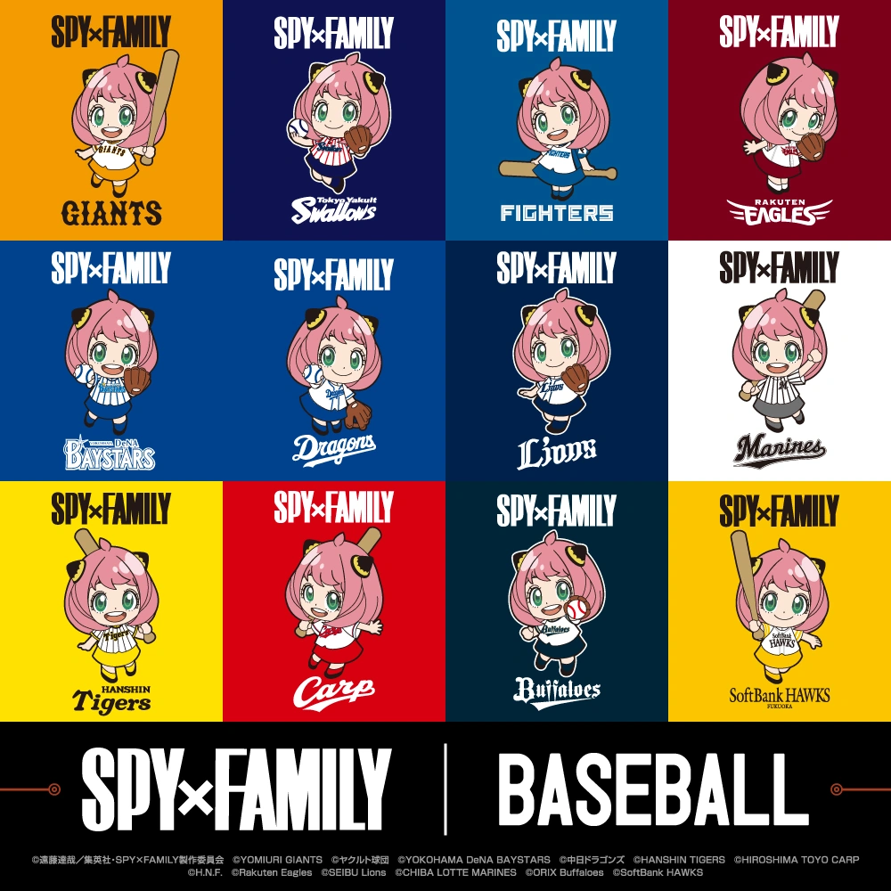 The SPY x FAMILY x Professional Baseball Collaboration, also known simply as SPY x FAMILY x Baseball, was a collaboration between SPY x FAMILY and Japan's 12 professional baseball teams (プロ野球 12球団?). It offered themed merchandise based around SPY x FAMILY.